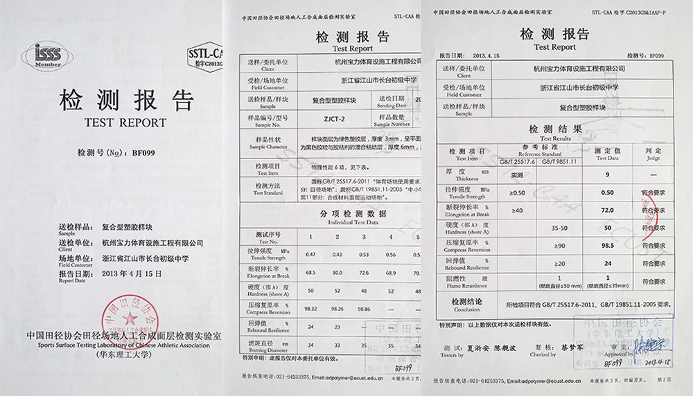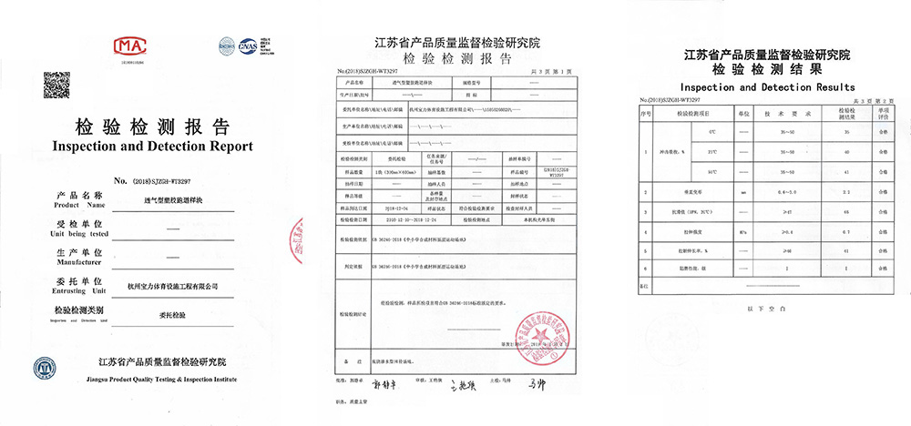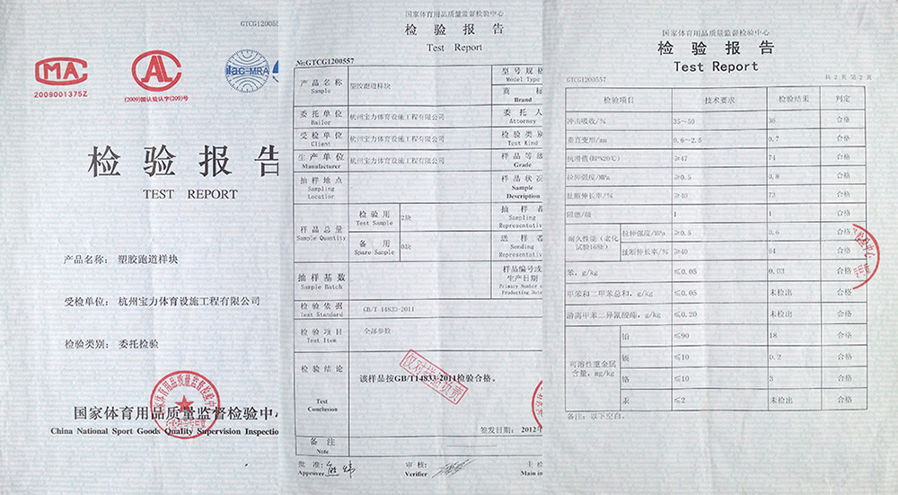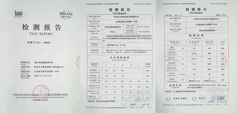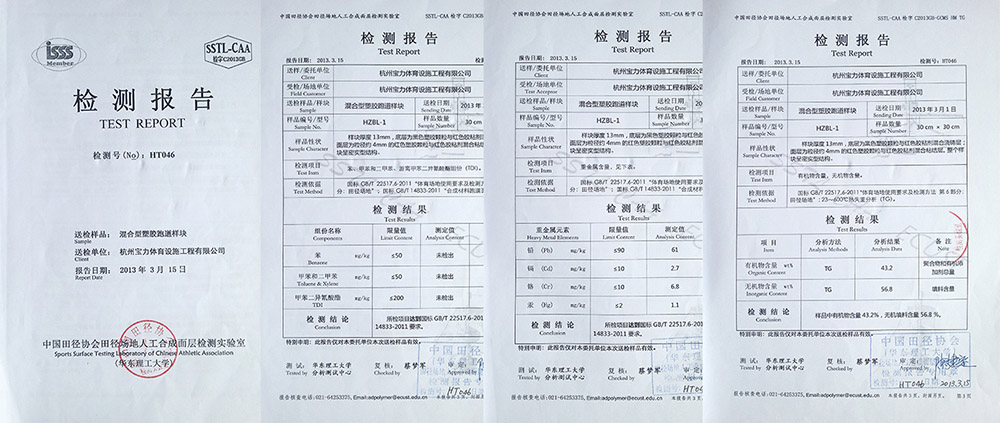 三大體系認證(iso9001質(zhì)量管理體系、ISO14001環(huán)境管理體系、ohsas18001職業(yè)健康安全管理體系)通過中國田徑協(xié)會指定檢測機構化學性能物理性能檢測
