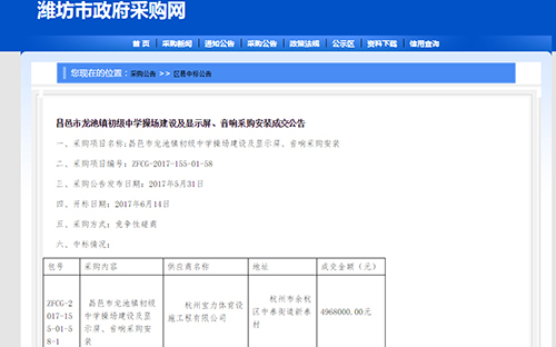 2017年6月17日中標昌邑市龍池鎮初級中學塑膠操場建設項目公告