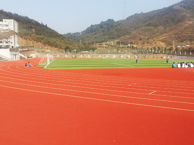 混合型塑膠跑道由聚氨酯材料與橡膠顆粒混合鋪設而成,兼具彈性與耐用性。其底層提供良好緩沖,面層耐磨防滑、色彩豐富。廣泛應用于學校、體育場館等。施工流程規范,后期維護簡單,只需定期清潔、避免重壓、及時修補,能長久保持良好性能,保障運動安全。