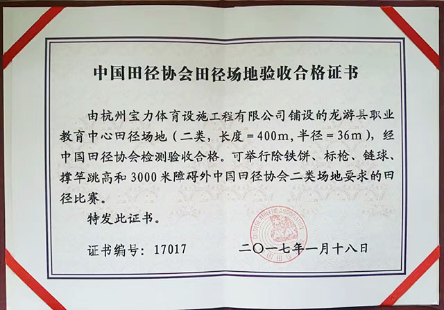 正因為寶力公司能夠如此精益求精,從人才聘用到施工監管都嚴格把守,層層規范,才能讓寶力公司無論承建怎樣規模的任務都可以順利完成,并為客戶帶去滿意的結果。寶力公司“樹立企業品牌,創精品工程”的準則也在這次龍游縣職業教育中心的田徑場上再一次得到證明。只有不懈追求完美,并用心努力,抱著精心為客戶打造世界一流水平的運動場地的態度,才能實現不斷的飛越,贏得更多用戶的信賴。