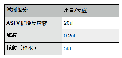 取出PCR反應液,室溫融化后,取相應份數(反應液20μl/T、Taq 酶0.2μl/T)混勻,然后向各PCR反應管按20μl分裝;再分別加入 5μl抽提好的DNA模板或陰/陽性對照,蓋好管蓋;將反應管置于 全自動熒光PCR檢測儀中,參照儀器操作說明設定陰/陽性對照、 待檢樣本參數進行PCR反應,記錄好樣本擺放順序。反應體系如下表: