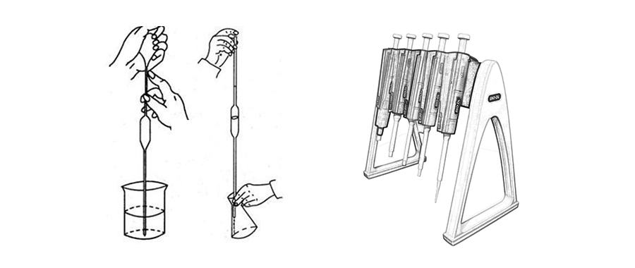在遙遠(yuǎn)的一百多年前,實(shí)驗(yàn)室里的精英們開(kāi)始用移液管來(lái)轉(zhuǎn)移液體。所謂移液管,就是一根空心的玻璃管,上面標(biāo)著1到N個(gè)刻度。把這根玻璃管插到液體里面,在管子的另一頭用嘴(剛開(kāi)始,我們的精英們只能用他們寶貴的嘴巴來(lái)干這個(gè)活)或洗耳球把液體吸到管子里,而上面的刻度則告訴我們里面有多少液體了。在吸滿我們需要的量之后,用拇指把吸液的這一頭堵上,然后把管子放到另外一個(gè)容器里,把手一松,讓管子里的液體流入到第二個(gè)容器中。這樣我們轉(zhuǎn)移液體的任務(wù)就搞定了!