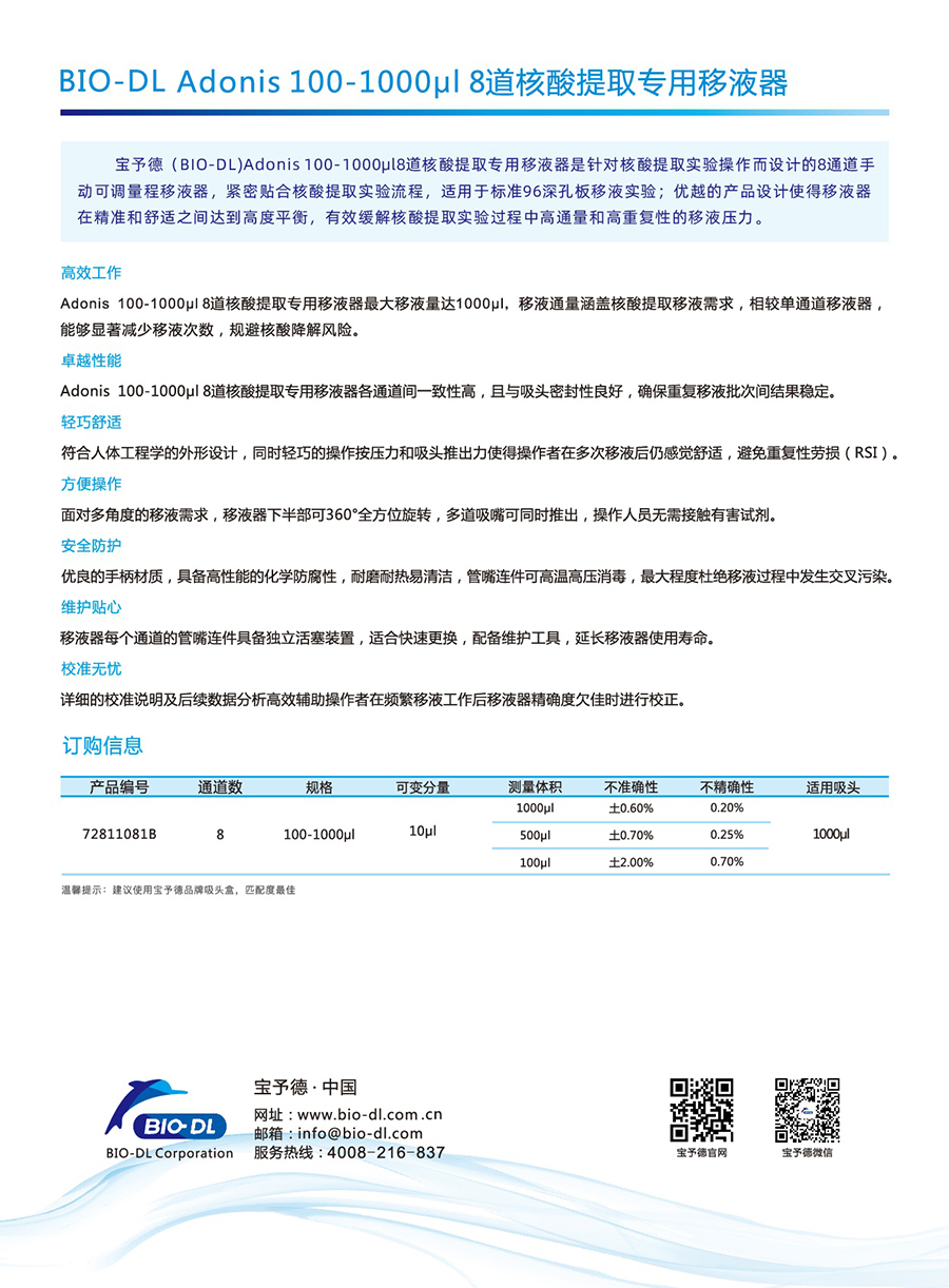 Adnios 100-1000μl 8道核酸提取專用移液器-BIO-DL寶予德